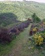 Grimpette jusqu’au menhir de la Felgère, et nous pénétrons à l’orée d’un bois où nous casse-croûtons. Il faut alors continuer en montant à travers le Peyrou et atteindre Auriac, village de quelques maisons, dont certaines abandonnées. A partir de là, nous cheminons sur un sentier en sous-bois, empruntant d’abord les courbes de niveau, puis une longue montée progressive nous amène aux Sagnoles, point de rencontre avec le GR 43.