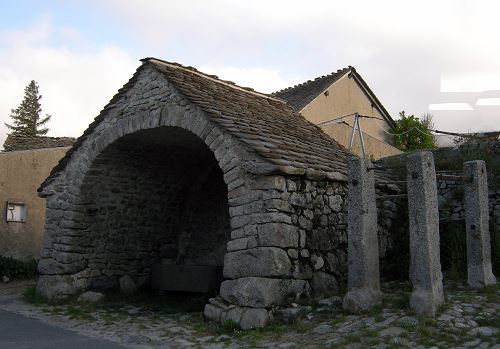 Il est midi vingt, fait très chaud, et circulation automobile trépidante. Nous franchissons le pont de la Bessède, et avons juste le temps d’acheter quelques victuailles au Carrefour Market du coin. Déjeuner pique-nique dans un square voisin, emplettes et café dans le centre de Florac, que nous quittons à 15H, en direction du Gralhon, où nous nous octroyons une petite halte vers la fontaine, avant d’attaquer la D16 qui grimpe jusqu’au Col de Pierre Plate.