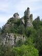 Après avoir passé la D35, nous arrivons sur une plate-forme où trônent moults menhirs. Vue exceptionnelle. Puis descente d’une piste qui va, se resserrant, jusqu’aux Combettes, petit village isolé au fond de la vallée du Bramont. Passage du pont, traversée de la route et remontée par une draille jusqu’à la forêt domaniale des gorges du Tarn. Celle-ci est longue, parfois montante, jusqu’au Valat de Las Ganses. S’amorce alors une interminable descente que nous empruntons à petits pas au milieu des cailloux.